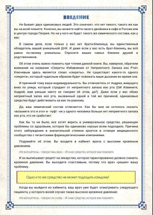 Описание: Книга предлагает убедительное доказательство того, что человеку по силам сохранить зубы здоровыми в течение всей жизни. Никто, ни стоматолог, ни врач, ни медицинское страхование – не может освободить Вас от этой ответственности. После прочтения этой книги Вы поймёте, что только Вы сами можете спасти свои зубы. Вы найдёте здесь точные инструкции.